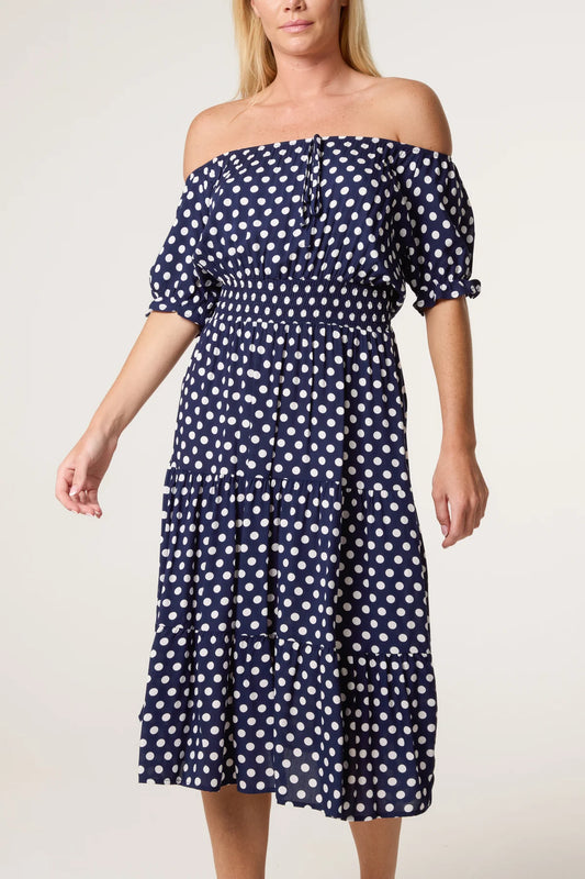 Keisha Polka Dot Shirred Waist Dress