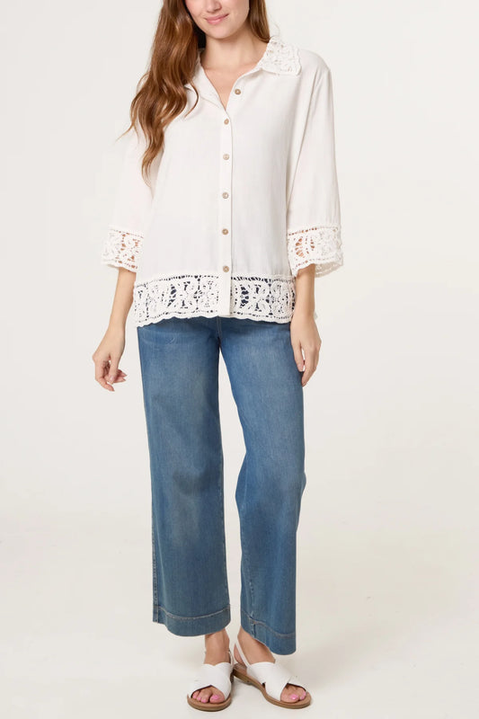 Deena White Crochet Hem Shirt