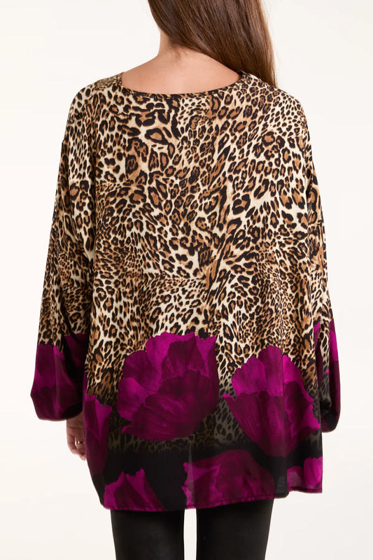 Marnie Leopard & Flower Print Oversize Top