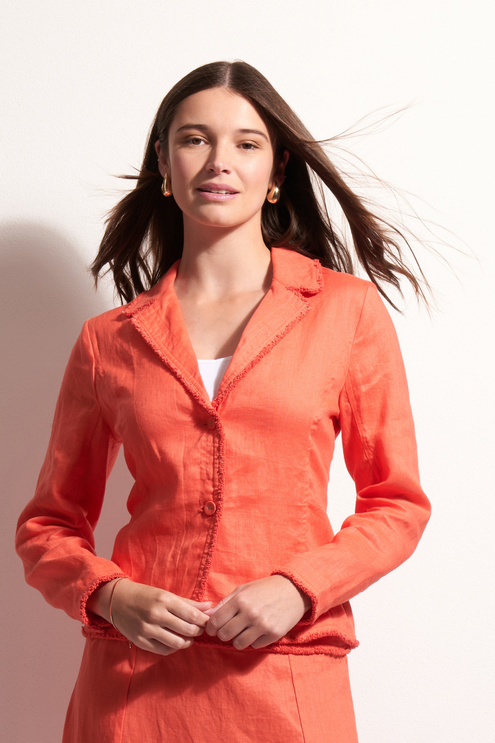 This is a great little summer jacket with Fringed edging detail and a front button fastening. The back has a nice gathered detail for best shaping.
