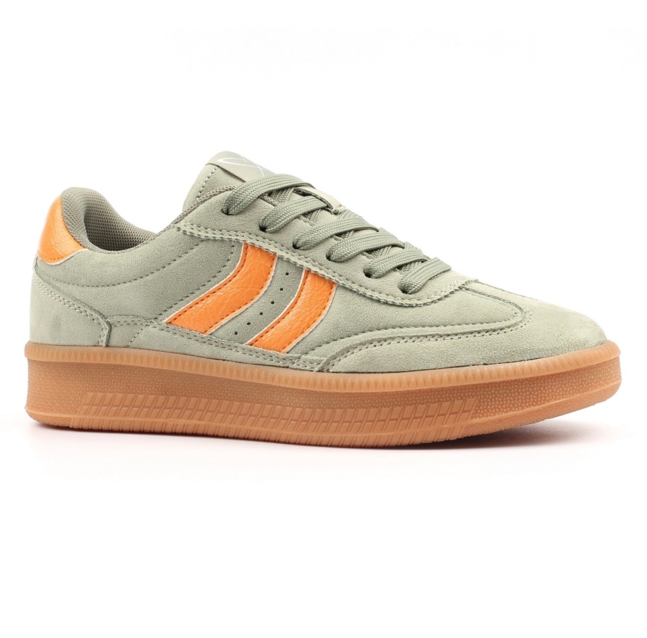 Step out in effortless style with the Maya retro-inspired trainers. Crafted in a soft mint green upper with vibrant orange detailing, they combine comfort with a bold, sporty edge. A padded insole and durable sole ensure all-day wearability, whether you’re keeping it casual or elevating weekend looks.