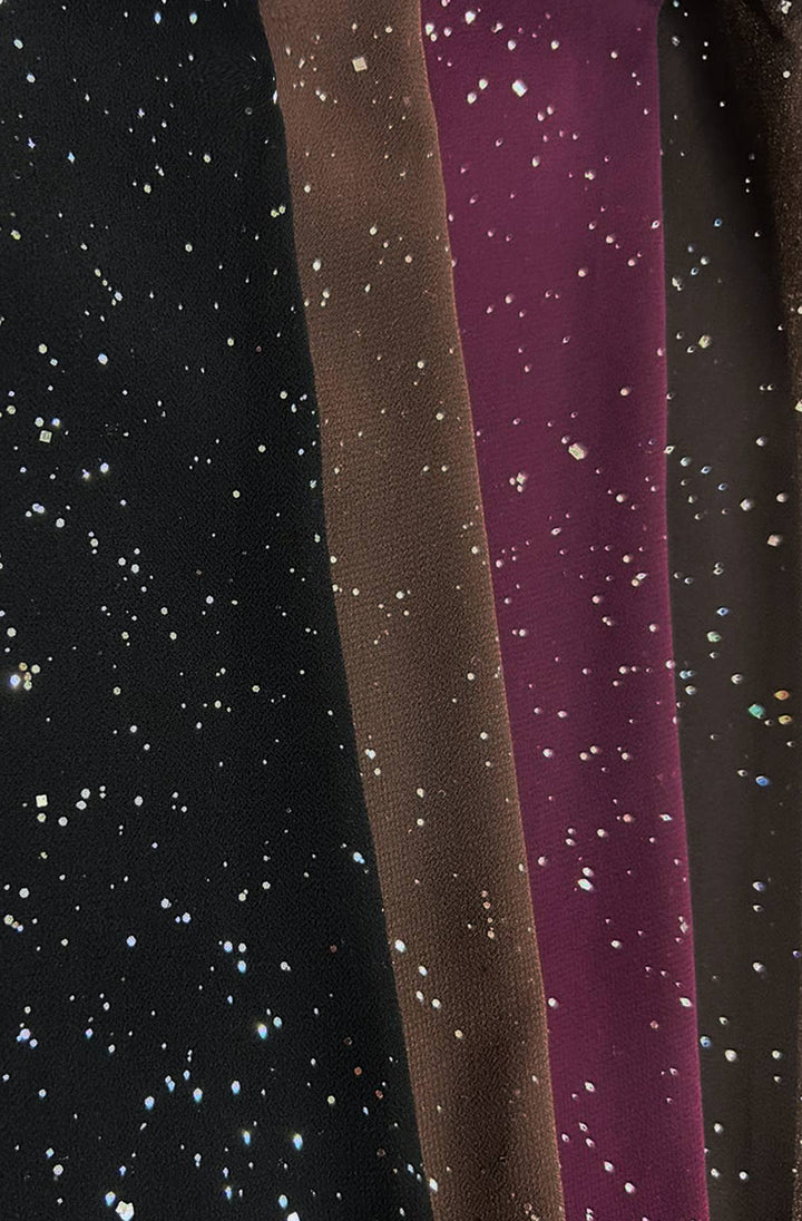 A soft inner lining at the front and back ensures comfort and coverage, while the elasticated hem with a frill edge allows for easy styling — wear it bloused, tucked, or loose depending on the moment. Sparkle accents throughout the fabric add a magical, star-dust effect perfect for Christmas parties, New Year’s Eve, and all things glamour.